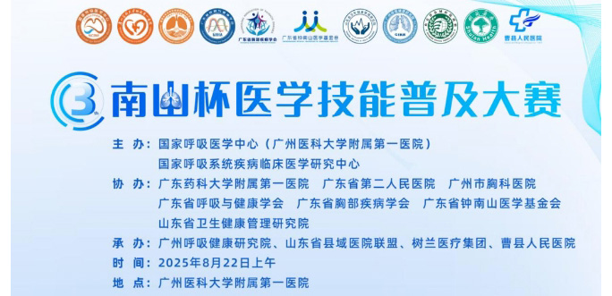 2025-08-292025年第三届“南山杯”医学技能普及大赛(广州赛区)将于2025年8月22日在广州医科大学附属第一医院沿江院区综合楼7-8楼举行。