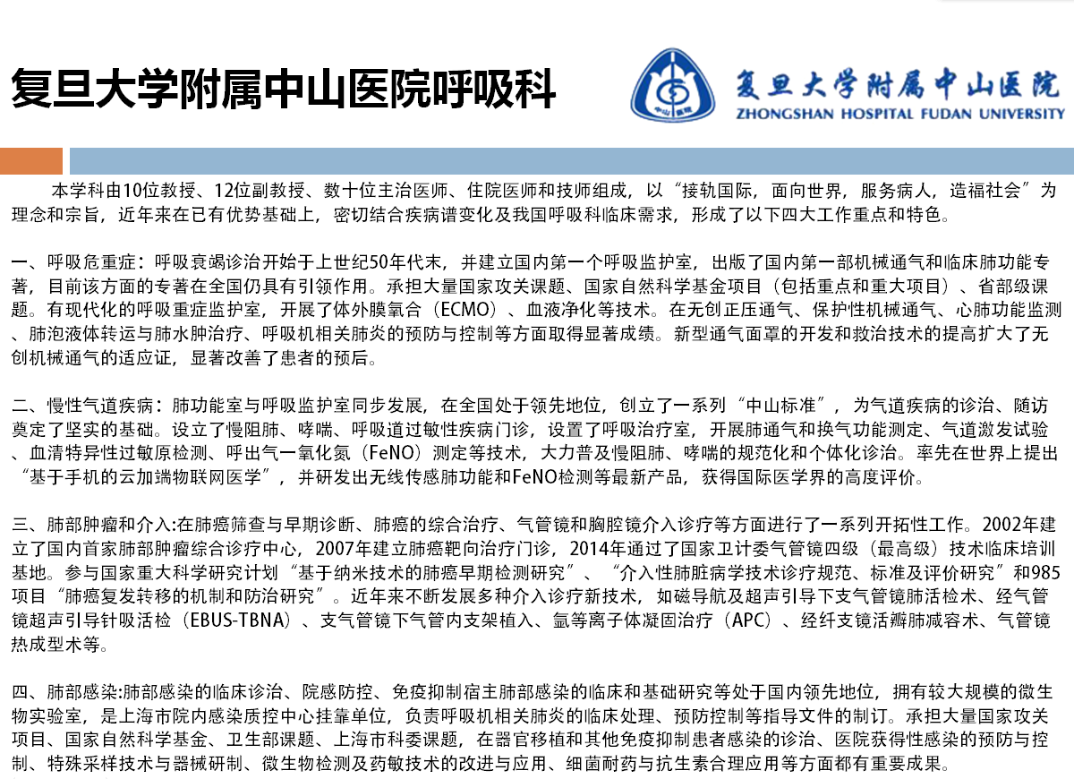 复旦大学附属中山医院呼吸科
