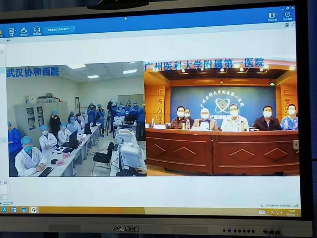 团队专家除了支撑本地病人的救治,还为国内外提供支援,在ICU承担危重症、重症病人的救治任务。图为支援武汉协和西院ICU医疗队与钟南山院士等专家远程视频会诊。
