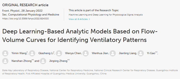 肺功能检查是临床上对胸肺疾病诊断、严重程度、治疗效果和预后评估的重要检查项目。临床上应用包括肺容积检查、肺量计检查、支气管激发试验、支气管舒张试验、肺弥散功能检查、气道阻力检查及运动心肺功能检查等。国家呼吸系统疾病临床医学研究中心副主任郑劲平教授、高怡副教授的研究团队长期开展肺功能检查的质量控制、推广培训、检查标准规范及其大数据研究。前期也相继编写了《肺功能学——基础与临床》、《肺功能检查实用指南》等著作。研究团队也曾于2002年对我国肺功能临床应用的现状进行了调查,发现我国肺功能的开展极不平衡,特别是在中小型医院肺功能的临床应用很多处于空白状态,部分大型教学医院的肺功能质量控制有待提高。也于2010年对我国大型综合医院肺量计检查报告质量进行调查,结果显示同时符合ATS和ERS的肺活量检查4项质量控制标准的仅占7.2%。研究团队近年应用人工智能深度学习算法模型进行肺功能检查大数据研究,并建立了肺功能检查肺功能数据质控、分析与管理平台。本论文成果应用人工智能深度学习算法模型基于肺功能检查的流量-容积曲线图像自动识别正常、阻塞性、限制性及混合性等不同通气模式。