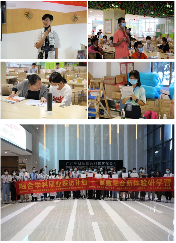 本次科普研学活动联合了多方的支持力量,由高考直通车|识行生涯、广州卫生职业技术学院等单位共同协办,综合了参观、讲授、讨论、交流、体验等多种形式,学员们不仅实地参观了实验室,还收获了呼吸健康、医疗大数据、人工智能及职业规划等相关科普知识。