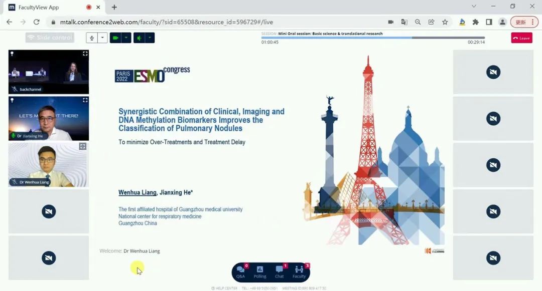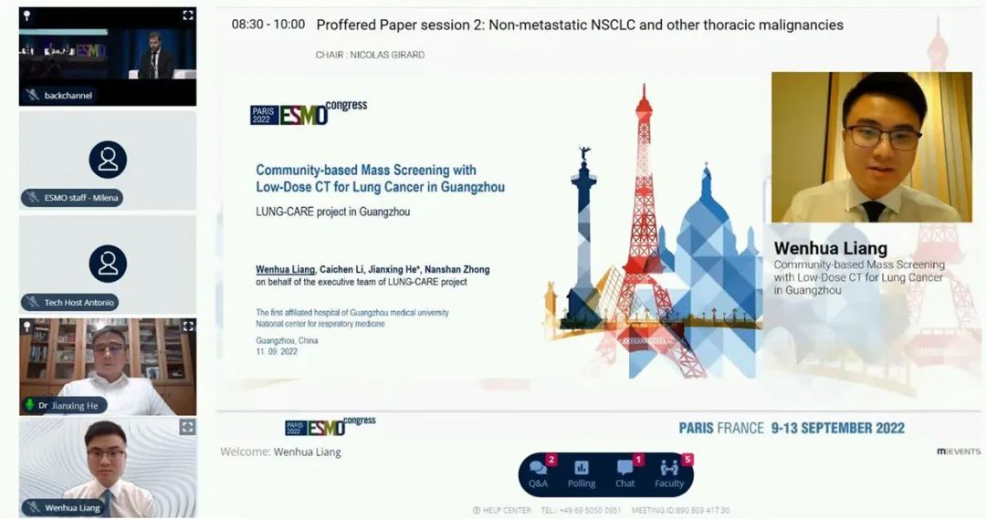 2022年9月9日-9月13日,欧洲最负盛名和最具影响力的肿瘤学会议——欧洲肿瘤内科学会(ESMO)年会如约而至。在本次大会上,广州医科大学附属第一医院(国家呼吸医学中心)、广州呼吸健康研究院的何建行/梁文华教授团队在肺癌早诊方面的两项研究,获得了大会口头汇报(LBA48、905MO),分别提出了新的肺癌筛查模式以及高度准确的肺结节辅助诊断工具,发出了肺癌防控的中国之声。