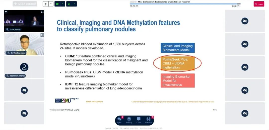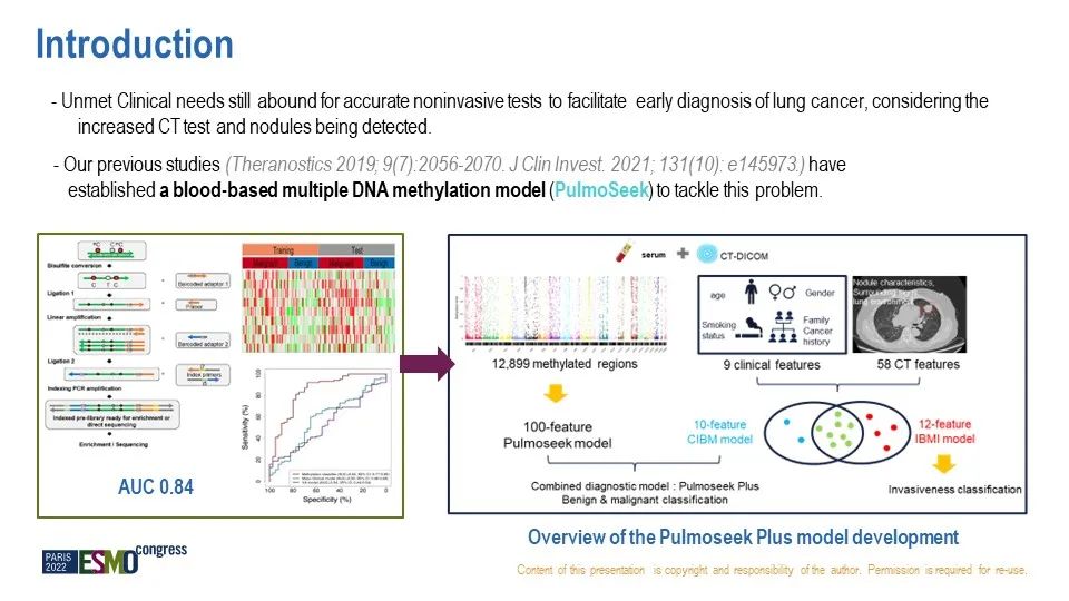 简要口头报告(mini oral session):ctDNA甲基化与影像特征联合诊断肺癌