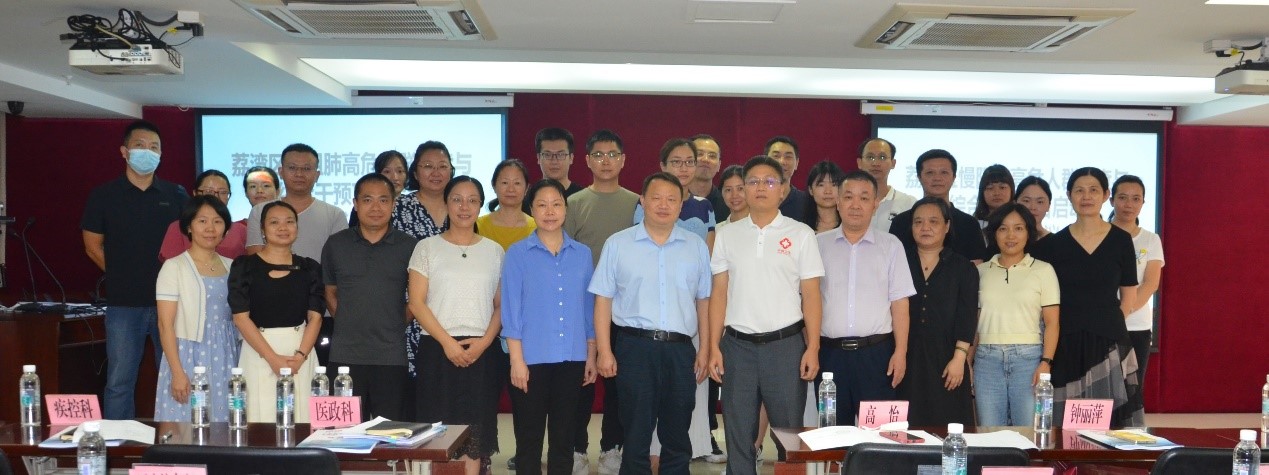 9 月21日下午,“荔湾区慢阻肺高危人群早期筛查与综合干预项目启动暨培训会议”在广州市荔湾区卫生健康局顺利举行。广州市荔湾区卫生健康局彭荣春副局长、医政科张庆灵科长、疾控科何一鸣科长,区疾控中心李文艳副主任,广州医科大学附属第一医院(以下简称“广医附一院”)副院长、广东省慢性呼吸疾病防治中心(以下简称“省慢性呼吸防治中心”)副主任黄伟青,广医附一院医务科科长、省慢性呼吸防治中心办公室主任欧阳斌,防治中心办公室副主任高怡出席了本次会议,以及荔湾区龙津街等10个社区卫生服务中心的相关负责人员也参与了此次会议。