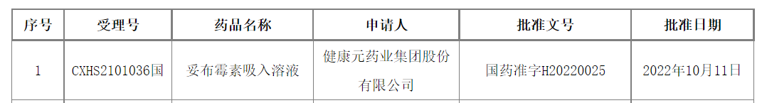 10月14日,国家药品监督管理局正式批准妥布霉素吸入溶液,全球首个用于以支气管扩张症治疗的雾化吸入抗生素。