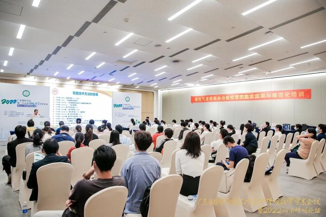 2022年10月21日,“肺功能检查规范化培训万里行——广州站暨2022广东省医学会第二十五次呼吸病学学术会议肺功能检查手把手培训专场”在广州越秀国际会议中心5楼502A国际会议一厅顺利举办。此次培训由国家呼吸系统疾病临床医学研究中心、国家呼吸医学中心、国家呼吸疾病医疗质量控制中心、广东省医学会呼吸病学分会、中国肺功能联盟主办,广州医科大学附属第一医院、广州呼吸健康研究院承办。来自广州、佛山、惠州、东莞、茂名、云浮等地约60名医务人员参加本次培训会议。