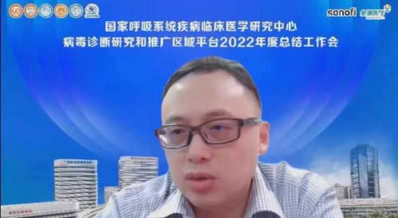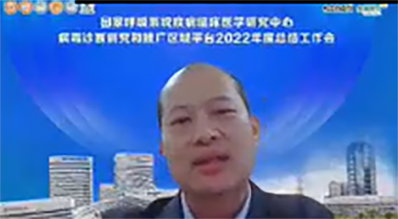 之后,五位优秀合作单位代表分别对各自单位2022年病毒诊断研究和推广区域平台阶段性工作进行了总结。各单位分别介绍了年度研究成果、学术成果、平台建设与人才培养以及存在问题和建议。其中,来自广东省中医院的急诊科主任医师奚小土介绍了其所在平台流感项目的成功案例,表达了合作共赢的愿望;来自广州中医药大学第一附属医院呼吸科的主任医师张伟谈及了样本资源库短板并提出合作共建的建议;来自云南省第一人民医院的呼吸与危重症医学科主任医师袁兵重点讲述了其平台下的呼吸专病诊断和病毒实验室,并提出了病毒大数据中心规划,同时,其平台负责人张云辉教授也热切表达了对平台互作共赢的支持。来自东莞市人民医院的呼吸内科主任医师沈利汉则报告了其平台特色的呼吸与重症学科建设发展规划。来自深圳市人民医院的呼吸内科主任医师王凌伟则提出了共同建设更高水平的临床检测和样本资源库的区域联盟的期盼。