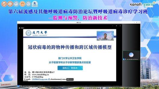 在“呼吸道病毒监测与预警”专场,中国疾病预防控制中心病毒预防控制所崔爱利教授介绍流感、呼吸道合胞病毒、腺病毒等众多急性呼吸道感染项目的监测情况以及分子流行病学结果,并结合国家科技重大专项”传染病检测平台“的应用实例,提出了当前新冠流行下其他呼吸道病原体监控的重要性。厦门大学的陈田木副教授则介绍“疾病X”的概念,以跨物种和跨区域两个传播模型为抓手介绍了六大新冠相关传播模型。广州医科大学附属第一医院林正诗研究员和广州医科大学金域检验学院曾志奇助理研究员也分享呼吸道病毒的监测与预警新见解。