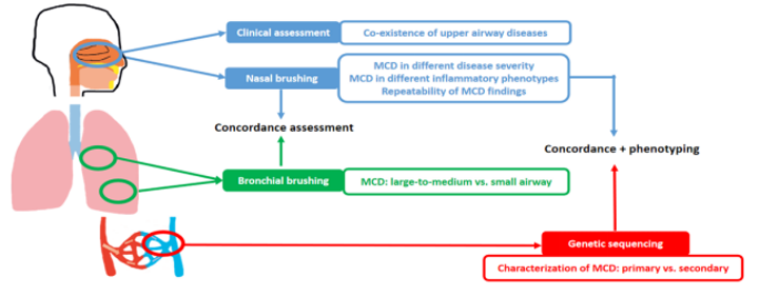 研究率先发现了支扩患者的上气道纤毛标志物表达特征基本与下气道一致,受上气道病变、支扩病因学、气道炎症分型的影响均较少,且多为继发性病变,佐证了“上-下气道共病”理念。