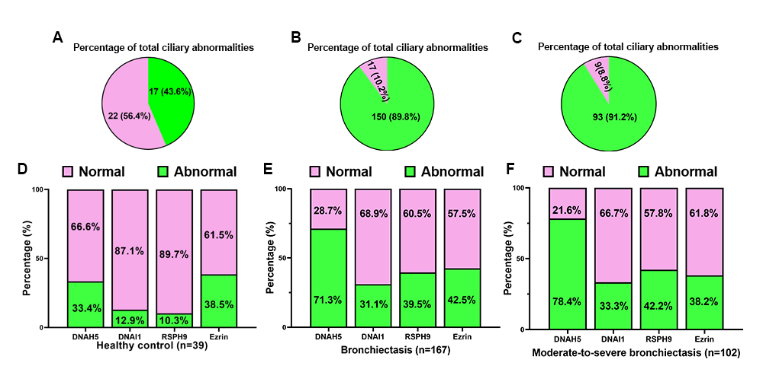 图2.纤毛标记物异常与支气管扩张严重程度之间的关系