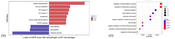(2)功能分析提示巨噬细胞相关基因在负调控免疫效应和血管生成过程中富集
