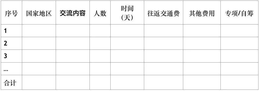 编制国际合作与交流费应说明拟开展的国际合作交流活动类型,即出国考察还是来华交流,并明确与项目(课题)的相关性,拟合作交流的目的地、预计人员规模、天数、费用等。