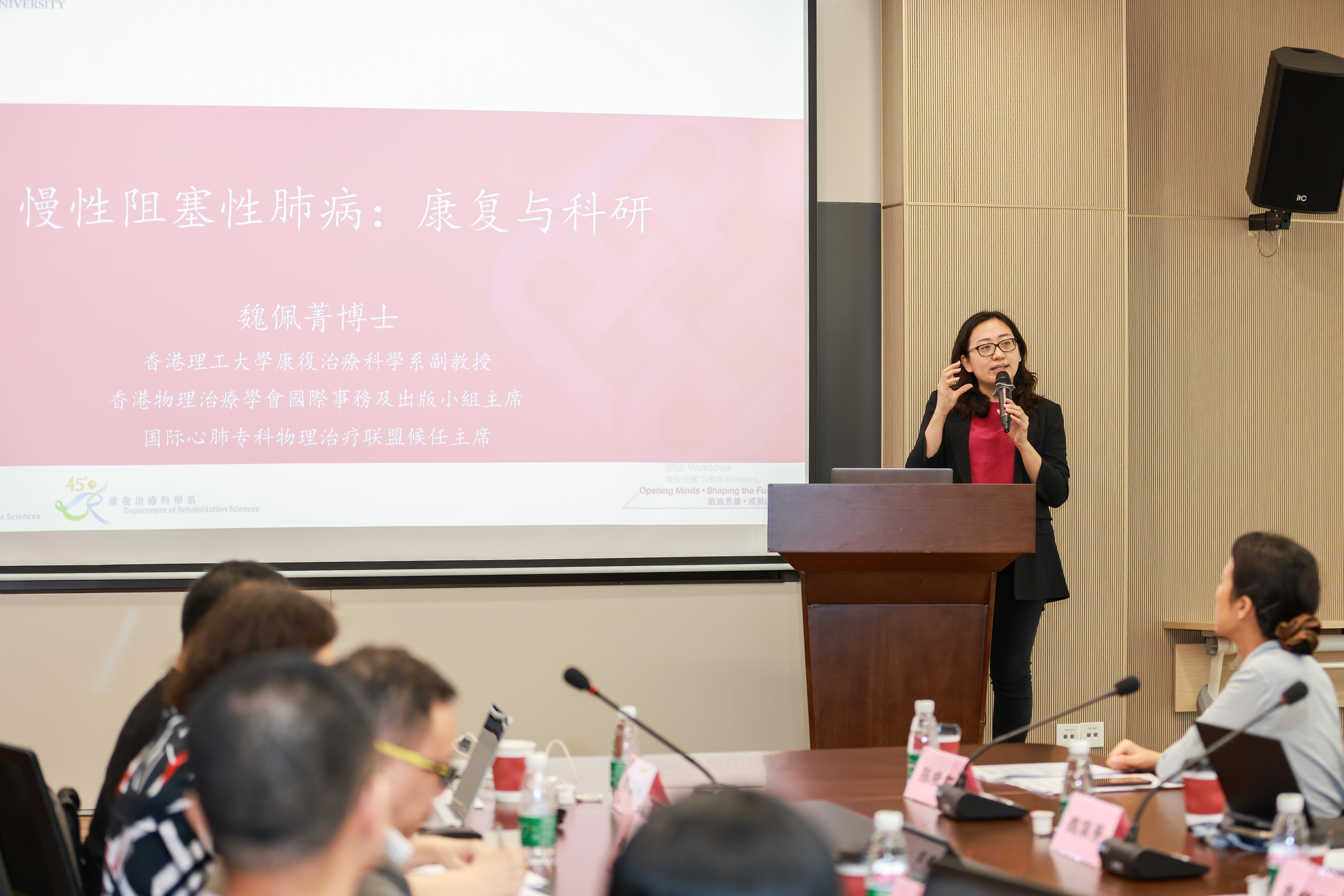 接下来,由来自香港理工大学的魏佩菁教授作《慢性阻塞性肺疾病:康复与科研》主题学术报告,介绍了其团队所开展的肺康复科研工作,她提到慢阻肺患者进行规范的康复治疗将有助于帮助慢阻肺患者的肺功能恢复以及减少肺功能的恶化。