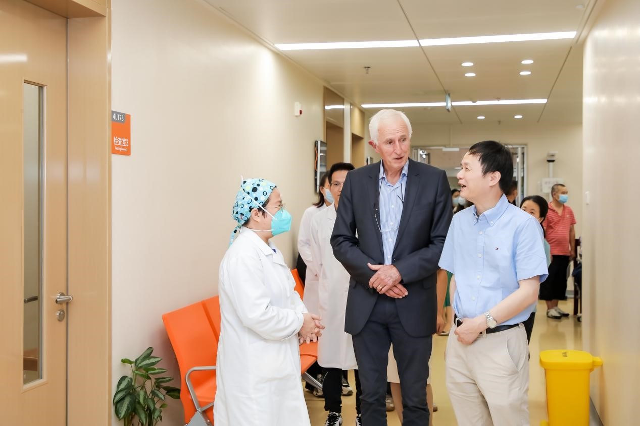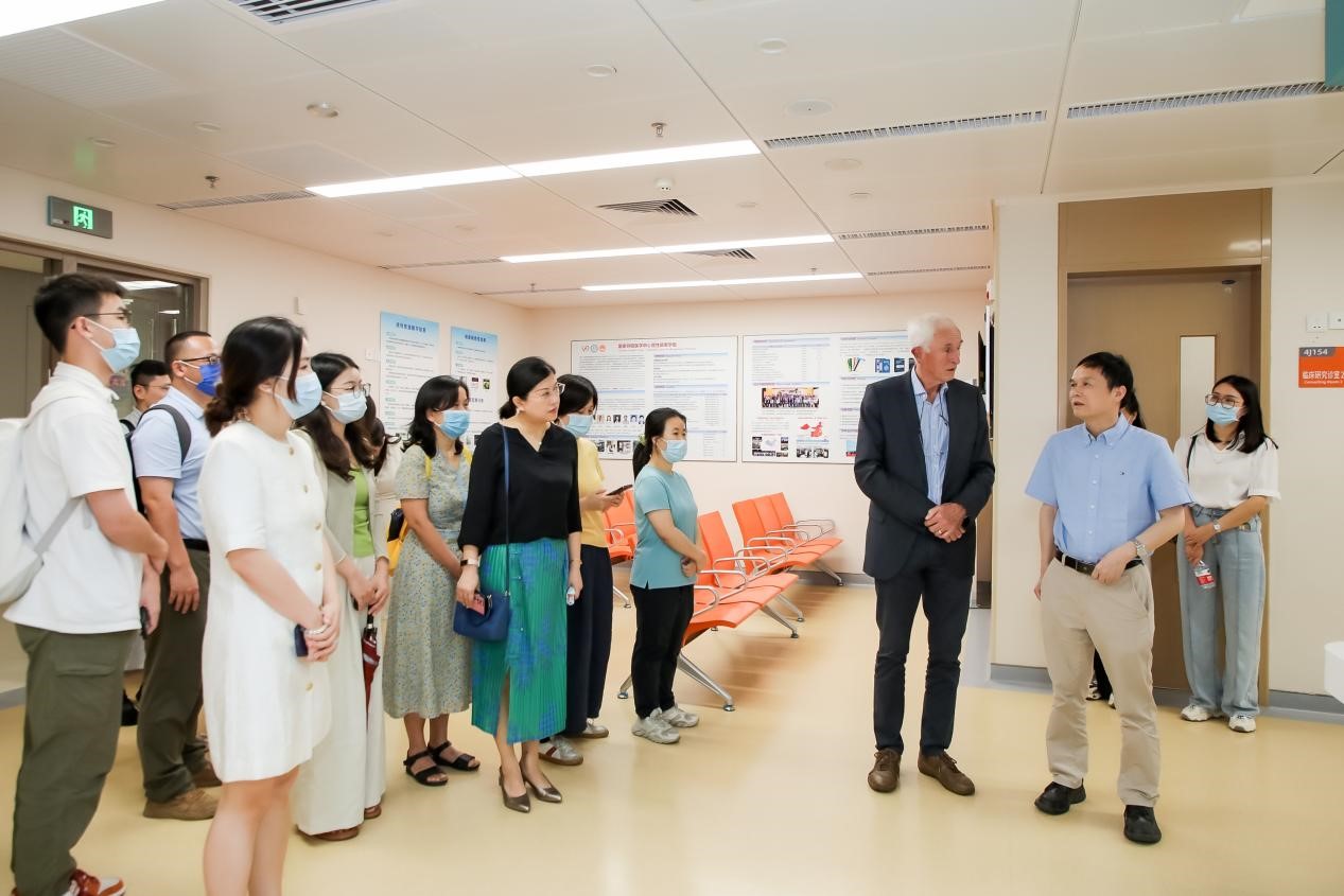 2023年6月6日星期二,全球哮喘倡议(GINA)科学委员会前任主席、开普顿大学肺病研究所创立人兼董事、开普顿大学肺病学院及格罗特舒尔医院的前任院长、欧洲呼吸协会的创始会员 Eric Bateman教授,在广州呼吸健康研究院、国家重点实验室临床实验部主任、咳嗽实验室负责人赖克方教授陪同下,先后参观了广州医科大学附属第一医院-广州呼吸健康研究院可视化智慧门诊、咳嗽实验室、肺功能室、慢性咳嗽病区等。随同参观的还有广东省中医院周明娟主任、彭瑾珂副主任,广州市中西医结合医院田应平主任,武警医院彭伟副主任、李悦斐副主任、唐倩仪医师一行7人。