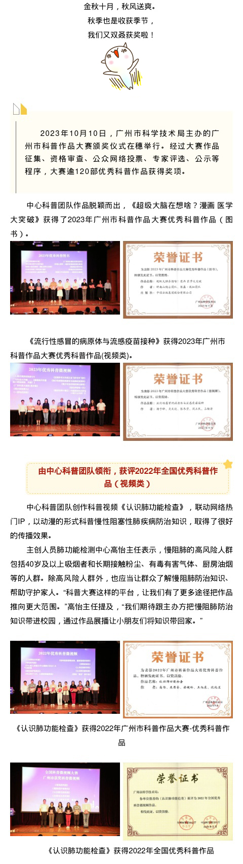 【喜讯速递】2023年广州市科普作品大赛,中心科普团队再获佳绩