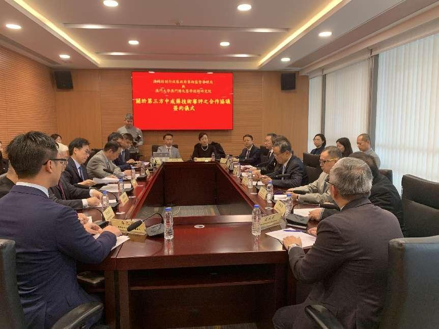药监局蔡炳祥局长表示澳门特区政府致力推动中医药大健康产业发展,切实执行《中药药事活动及中成药注册法》,构建符合中医药理论与特点的审评审批制度,促进中药传承和创新,支持产业发展。中药创新药转化是推进澳门大健康产业发展的切入口之一,药监局重视人用经验对中药安全性以及有效性的支持作用,鼓励已具有丰富人用经验的医院制剂以及配方源自两院院士或国医大师的制剂在澳门落地转化。澳门大学在中药科研及教学方面成果显著,澳门转化医学创新研究院致力于中药创新及转化,并拥有丰富中药审评经验的专家团队,藉着与研究院签署合作协议,研究院出具的审评报告能为药监局的中药审评提供参考。