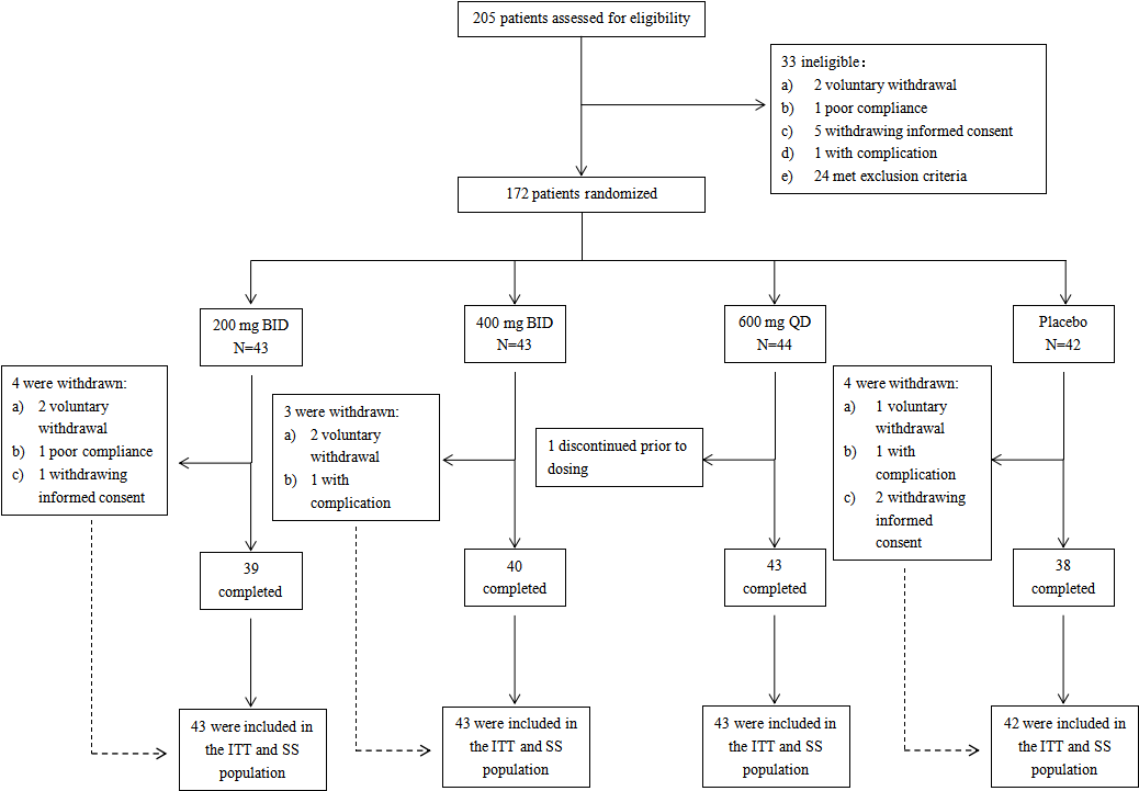 图1. 昂拉地韦全国多中心、双盲、随机、安慰剂对照临床II期试验流程