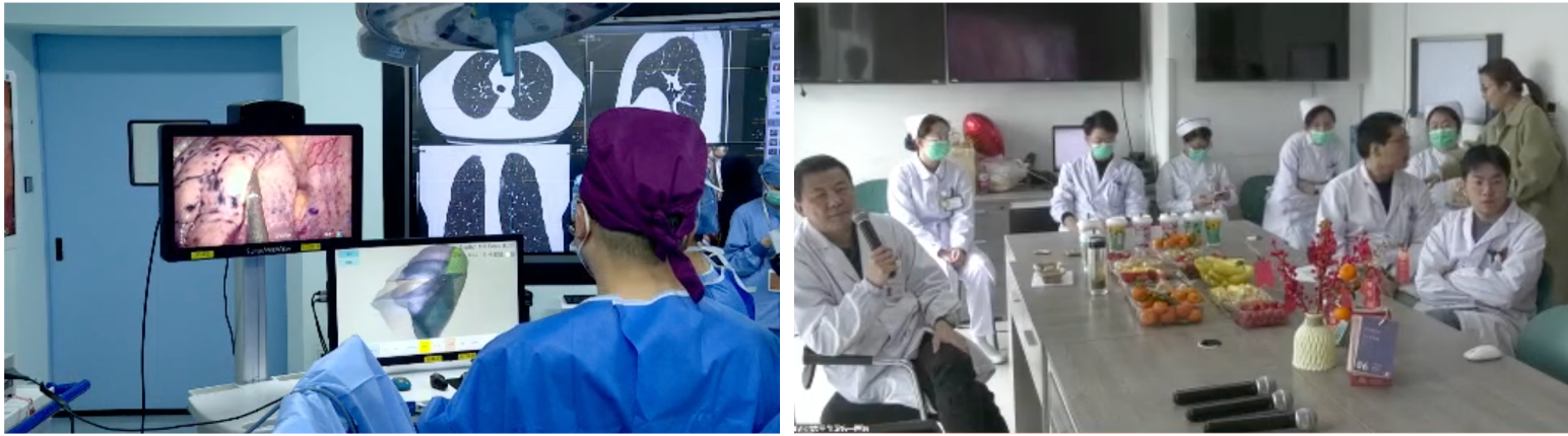 郑大一附院王守俊院长致辞(左)李向楠教授团队展示Tubeless肺段手术(右)