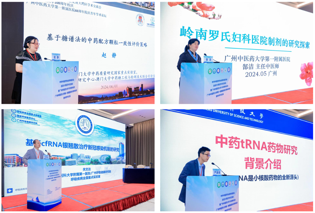 在“湾区经验分享”环节,澳门大学中药质量研究国家重点实验室赵静教授着眼于中药配方颗粒一致性评价分享了基于糖谱法的中药实践与应用新策略;广州中医药大学第一附属医院科研部负责人郜洁教授分享了岭南罗氏妇科医院制剂的研发历史与研究经验;广州医科大学附属第一医院广州呼吸健康研究院关文达教授分享了银翘散治疗新冠的临床有效性预测指标的研究经验;澳门科技大学中药质量研究国家重点实验室严通萌助理教授聚焦中药现代化研究前沿分享了中药tRNA药物研究平台建设及新药开发的经验。