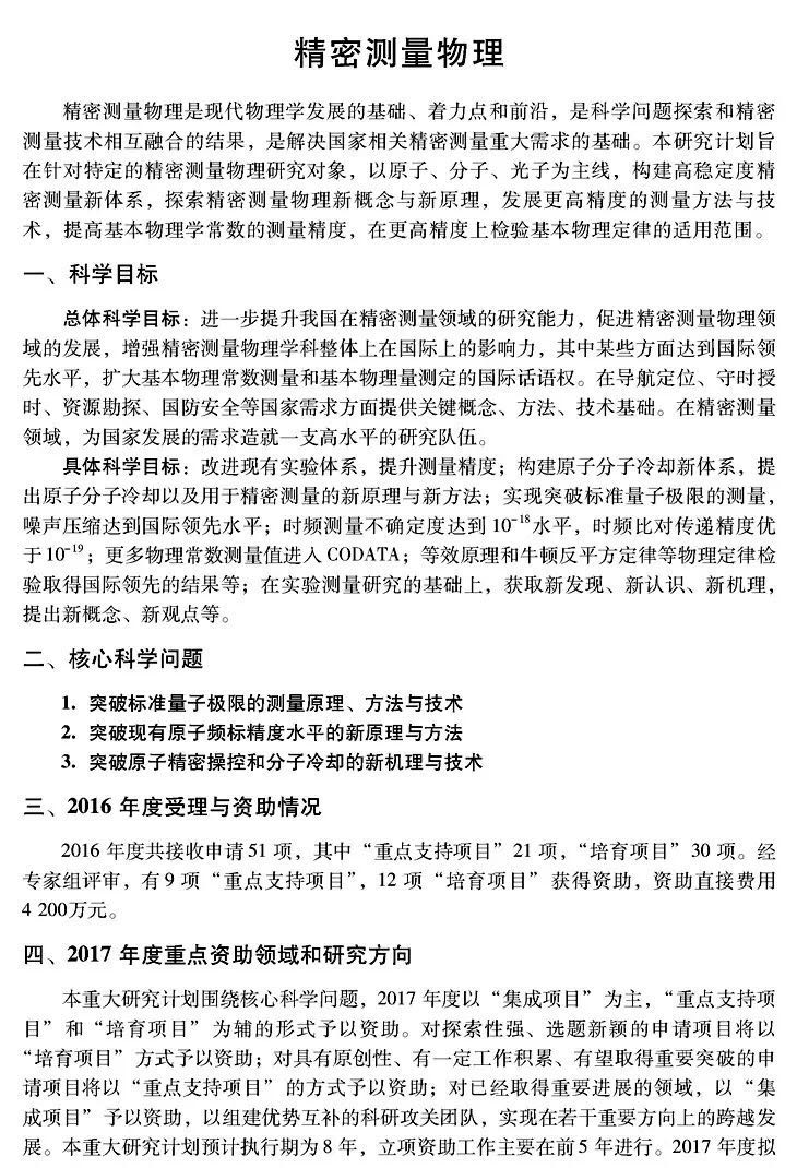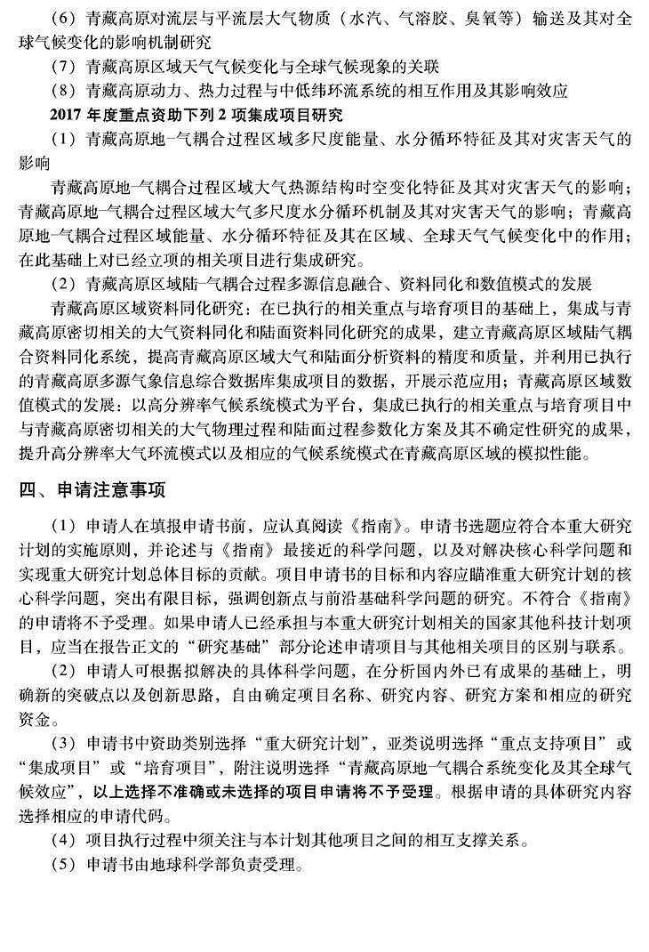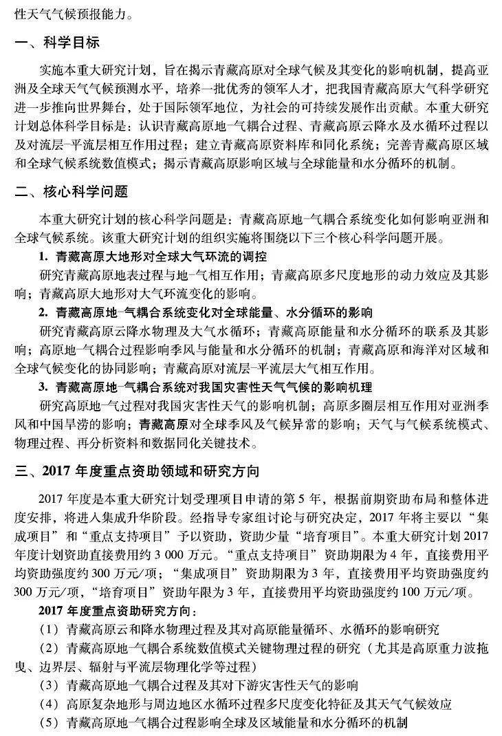 2017年度国家自然科学基金项目指南:重大研究计划项目