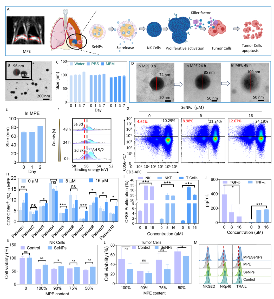 最后,他们通过小鼠体内实验验证得出LET-SeNPs预刺激NK细胞这一CAR-NK细胞治疗,在MPE小鼠模型中显示出有效的抗肿瘤效果。该工作为促进新型靶向纳米材料或靶向机制明确的NK治疗先导化合物在MPE综合诊断和治疗中的临床应用提供了新的策略。