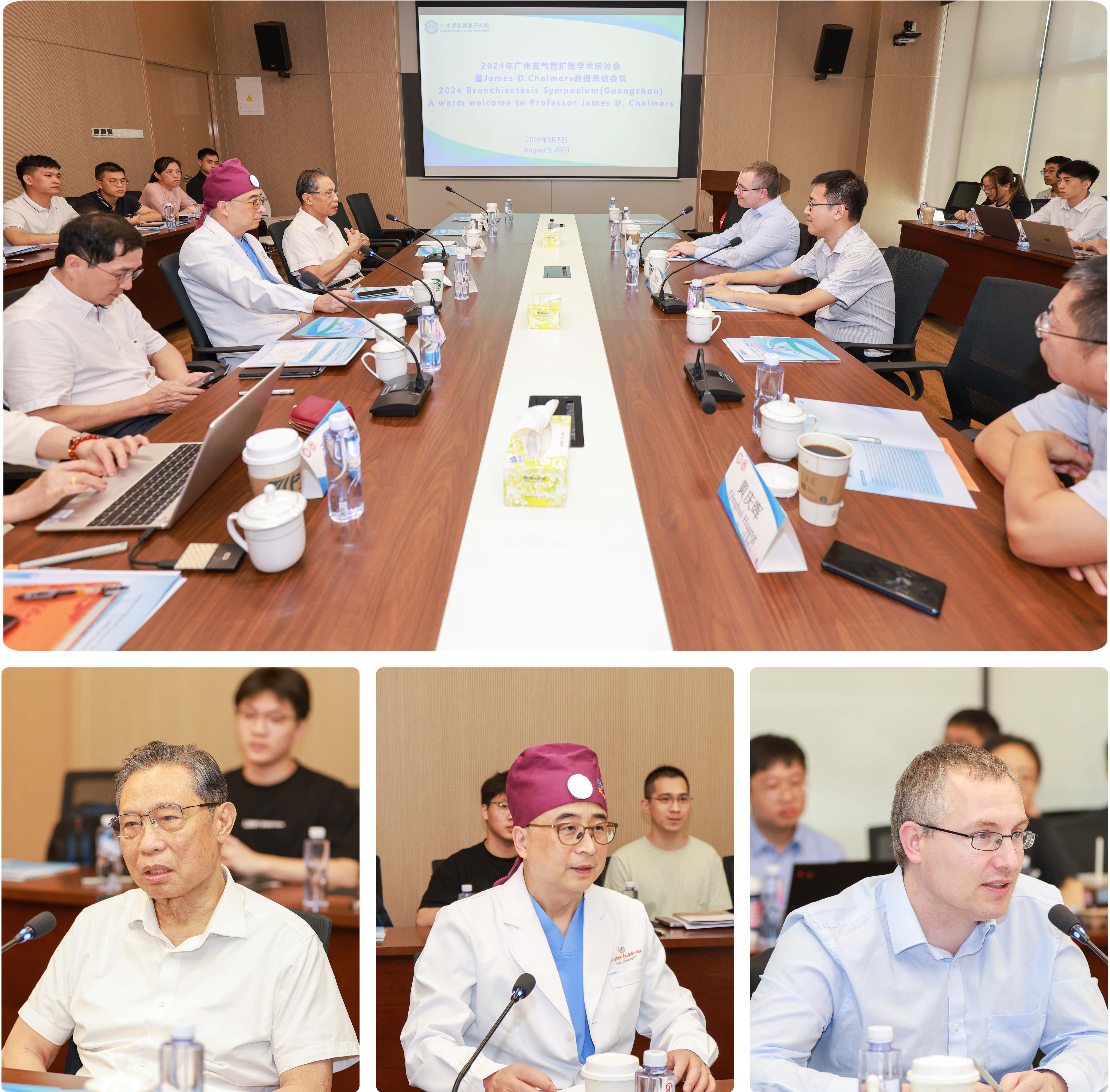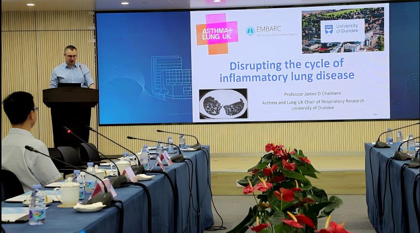 2024年8月5日至6日,广州医科大学附属第一医院与广州国家实验室联合主办了广州支气管扩张症研讨会,广州医科大学附属第一医院、广州呼吸健康研究院、广州国家实验室等多位专家教授齐聚一堂,与来自苏格兰邓迪大学的James D. Chalmers教授展开学术交流,展示了国内外支气管扩张症的最新研究成果,为支扩研究提供高水平的学术交流平台。Chalmers教授先后参观了广州医科大学附属第一医院国家呼吸医学中心、广州实验室等国家级平台,并与相关专家进行了深入交流和讨论。