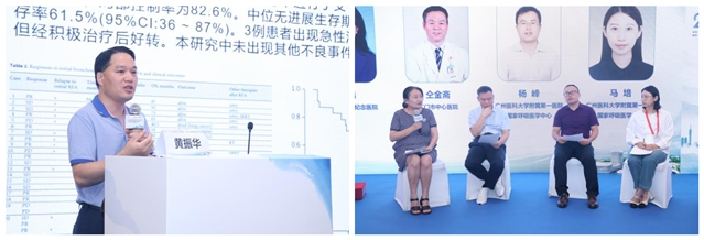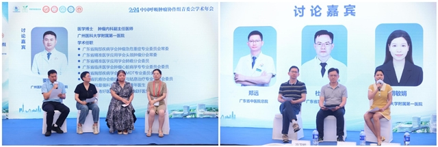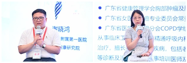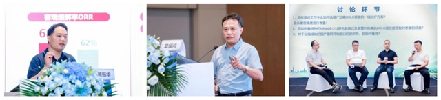 在分会场主席秦茵茵教授、谢晓鸿教授致辞后,杨爽教授、秦茵茵教授分别就阿来替尼ALK+ NSCLC全线治疗、ROS1+NSCLC治疗进展与未来趋势进行了深入讲解。林心情教授、余宗阳教授、黄振华教授分别介绍了HER2及EGFR20插入靶向药物进展、延缓或克服EGFR-TKIs耐药、EGFR+NSCLC患者的全程管理。在谢晓鸿教授主持下,由陈瑞教授、仝金斋教授、杨峰教授、马培教授围绕以上内容展开了激烈的探讨。张嘉涛教授就驱动基因阳性晚期肺癌患者动态用药,利用药物假期这一治疗新机遇做了精彩报告,蒋莉教授对ALK阳性NSCLC患者治疗长生存案例进行了深入解读。阳隽教授、郭伟洪教授、郑忠生教授、聂广杰教授在李卫东教授的主持下,就上述热点问题进行了热烈讨论。