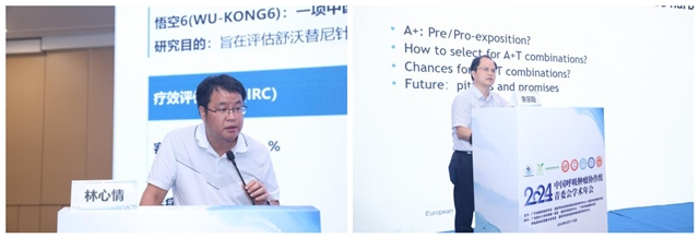 会议第二节,左玮教授首先分享了ALK-TKI的研究进展,对于钻石突变的治疗现状及未来研究方向进行了总结分享。随后,方文峰教授对EGFR-TKI耐药形成冷肿瘤后如何治疗以及免疫治疗是否能使此类人群获益进行了讲解。林心情教授则专注于新一代ALK抑制剂研发到临床的探索之路,为我们带来了最新、全面的研究数据。最后,蔡修宇教授为与会嘉宾带来了关于非小细胞肺癌中ADC药物的新进展,他表示尽管ADC药物目前仍存在疗效不够、毒性较大的问题,但对其未来的发展和应用前景仍抱有很高的期望。刘斌教授、魏树全教授、姜文瑞教授就以上内容进行了讨论分享。