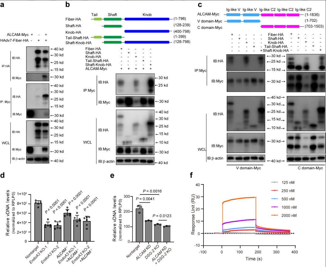 通过机制研究发现,ALCAM介导B组腺病毒侵入宿主过程,HAdV-B7 knob结构域与宿主细胞膜表面ALCAM C和V结构域相互作用通过DSG2-ALCAM-EndoA3轴促进病毒内吞。
