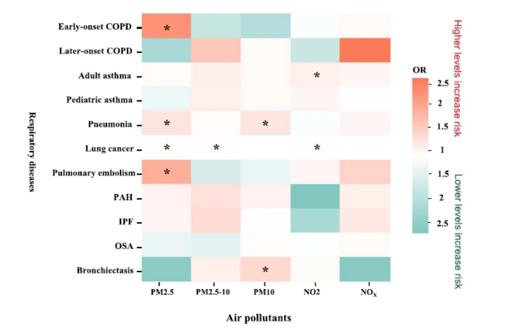 空气污染物对全球健康造成重大威胁,在过去的二十年里,由于工业化和气候变化等因素,与空气污染物相关的疾病死亡率上升了66%。然而,由于传统观察性研究中的局限性,关于空气污染物与呼吸系统疾病之间的关系存在相互矛盾的研究结果,其在基因层面的致病病理生理机制也尚不明确。
