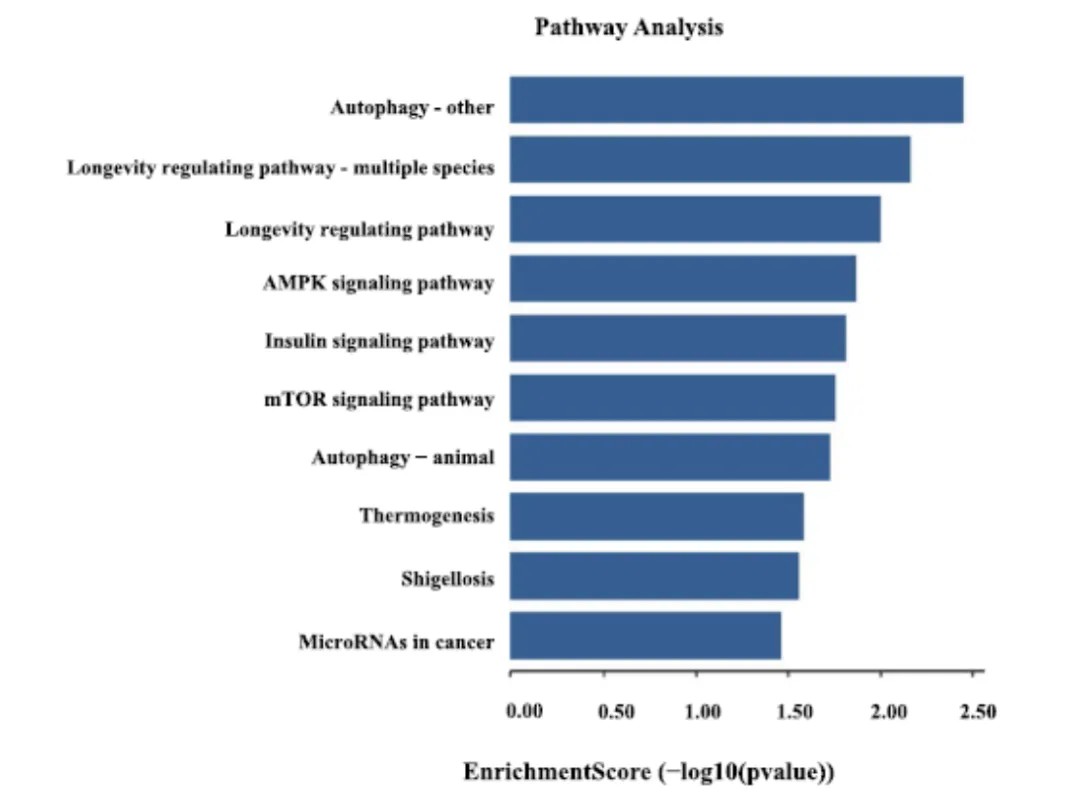 富集分析结果显示,PM2.5和早发型COPD相关的基因富集在十条基因通路上,其中主要包括细胞生长、代谢、存活和稳态调节等相关的途径。(图6)