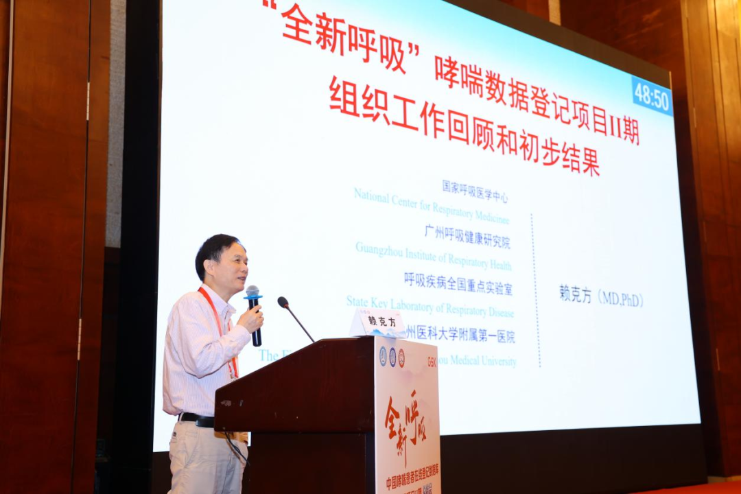 赖克方教授系统回顾了项目II期的实施历程,并展示阶段性成果。赖克方教授全面回顾了项目II期的实施进程,并系统展示了阶段性研究成果。项目采用统一、标准化的登记参数,构建了覆盖全国的哮喘单病种标准化病例数据库系统平台。该登记系统包含两大核心模块:首访基线数据采集和规范化随访管理(3个月及12个月复诊随访)。为确保项目高质量实施,项目组采取了多项保障措施:通过系统化的登记参数培训、严格的录入人员资质考核以及定期的阶段性总结评估,构建了完善的质量控制体系。特别值得一提的是,项目质控组针对登记病历的五大关键维度(基本信息、病史资料、实验室检查、问卷评估、诊疗记录)的数据完整性、准确性和合理性,开展了九轮全方位质控核查,累计完成审核48,774次,充分保障了数据质量。项目自2022年8月19日启动,在全国22个省市自治区101家医疗中心的共同努力下,不仅超额完成原定8,000例的录入目标(实际完成1万4千多例,达标率179%),更实现了22家医院信息系统的自动化数据采集,累计整合门诊病例13.6万例、住院病例1.9万例的临床大数据,为哮喘疾病的深入研究奠定了坚实的数据基础。II期登记对进一步了解中国哮喘诊治现状的全貌具有重要意义。
