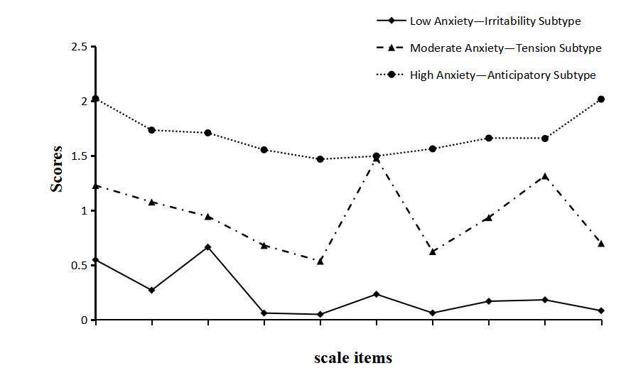 注:亚型 1:低焦虑—易怒型; 亚型2:中度焦虑—紧张型; 亚型3:高焦虑—预期焦虑型