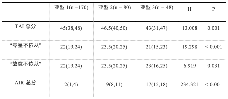 表1 不同焦虑亚型COPD患者TAI和AIR评分的比较