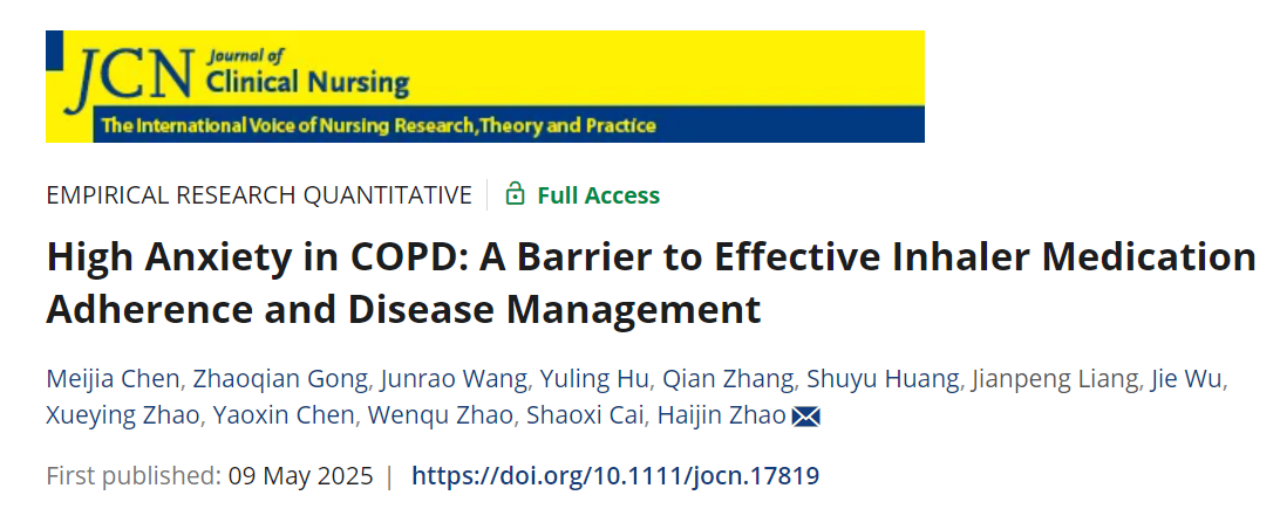 慢性阻塞性肺疾病(COPD)的疾病管理中,心理障碍长期被低估。分中心南方医科大学南方医院赵海金教授团队近期发表于Journal of Clinical Nursing(中科院2区)的原创性研究,首次通过潜在剖面分析识别出COPD患者存在三种焦虑亚型,其中"高焦虑-预期焦虑型"患者表现出显著的用药依从性障碍(P < 0.01)。该研究揭示:预期焦虑会导致患者回避吸入药物使用,形成"焦虑-治疗抵抗-病情恶化"的恶性循环,这一发现为COPD个体化心理干预提供了精准靶点。
