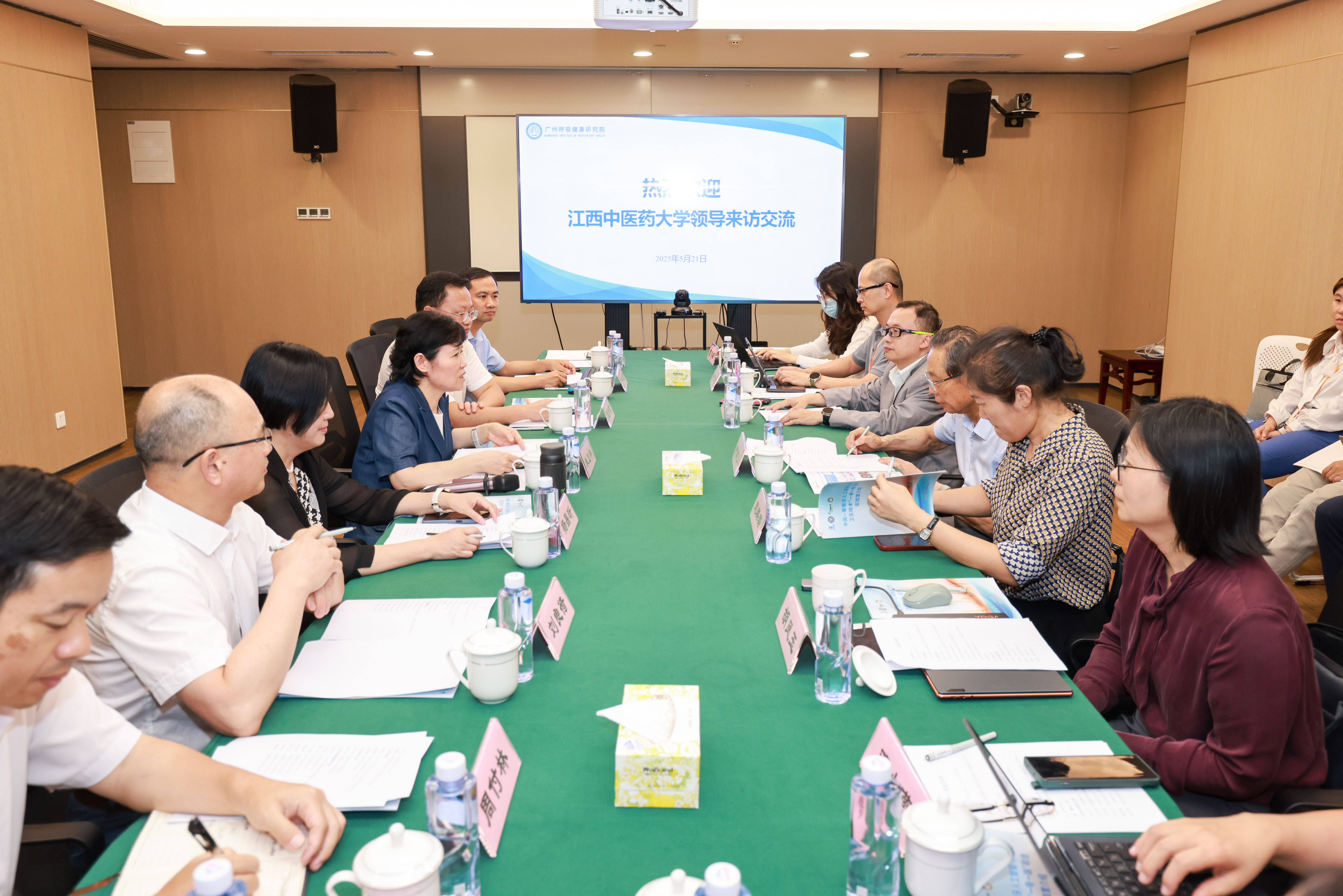 2025年5月21日,中国-葡萄牙人工智能与公共卫生技术“一带一路”联合实验室(以下简称“中葡联合实验室”)团队与江西中医药大学中葡传统医药学联合实验室团队,在广州医科大学附属第一医院大坦沙院区举办中葡联合实验室合作建设交流座谈会。中葡联合实验室主任钟南山院士、实验室副主任(执行主任)杨子峰教授等热情接待了来访的中葡传统医药学联合实验室主任、江西中医药大学朱卫丰校长一行,双方就中葡联合实验室如何开展合作建设进行了密切友好的交流座谈。会议由杨子峰副主任主持,广州实验室、广州医科大学金域检验学院、广州医科大学附属市八医院和广州呼吸健康研究院等部门领导及有关专家参加了座谈会。