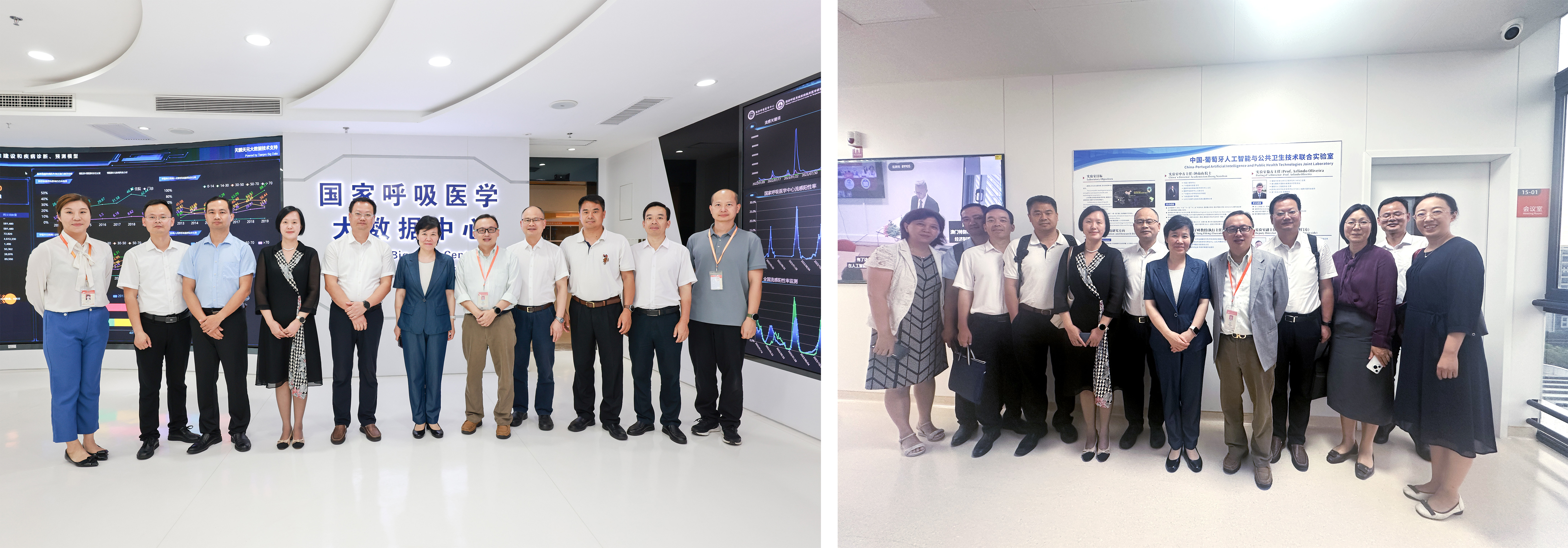 会后,朱卫丰校长一行在杨子峰副主任的陪同下参观了国家呼吸医学大数据中心,以及中葡联合实验室(大坦沙院区)。此次访问加深了双方在中葡国际合作方面的相互了解,为推动双方在中葡联合实验室的交流合作打下了坚实基础。