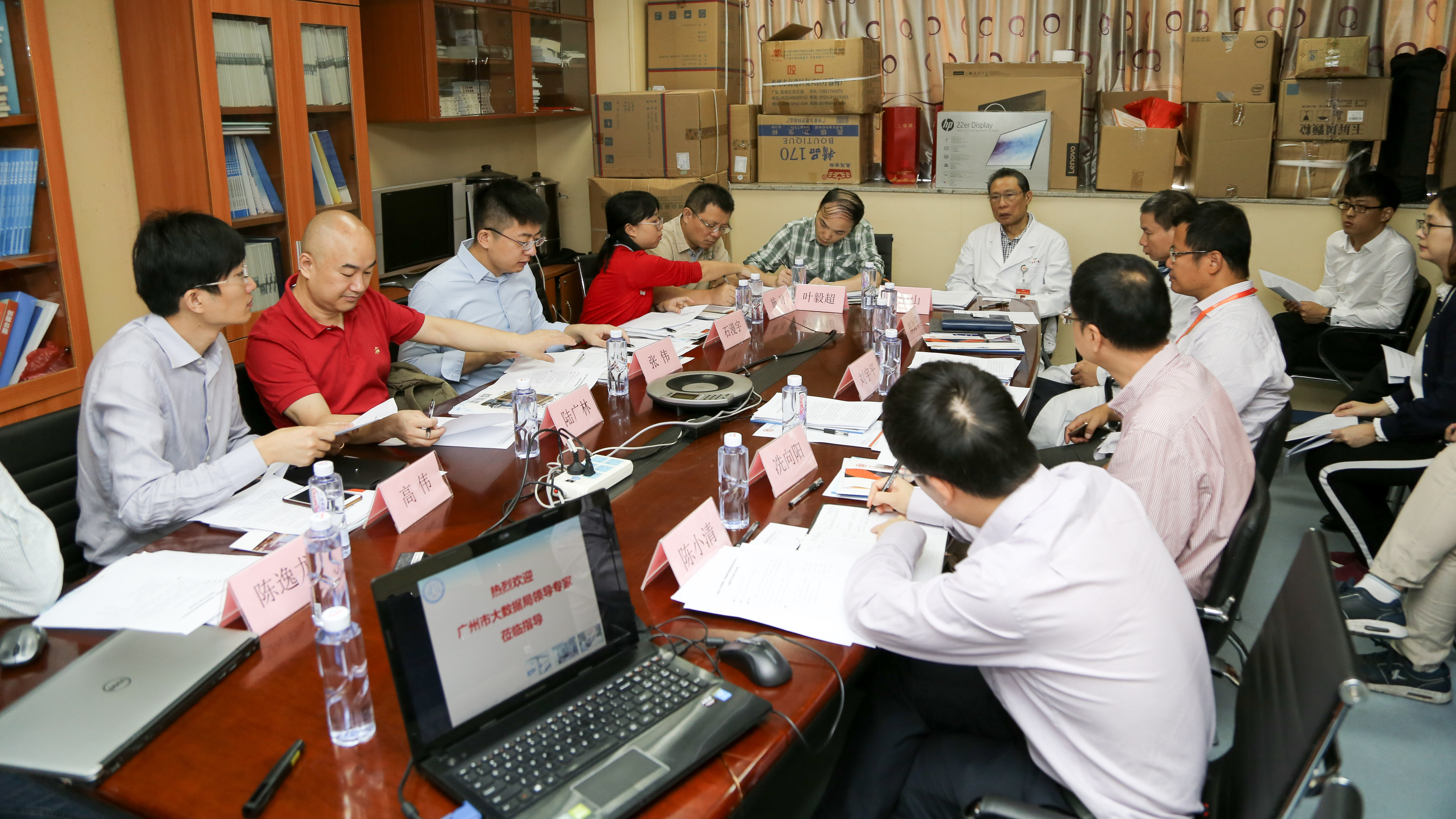 2017年10月24日上午9:00医疗大数据开发与应用工作研讨会在广医一院新大楼29楼会议室召开,广州市大数据局叶毅超副局长、施冰副巡视员一行,国家呼吸系统疾病临床医学研究中心主任钟南山院士、中心副主任郑劲平教授,广医一院刘宇平副院长、信息科冼向阳副科长、陈智工程师、科研科陈小清科长,广州天鹏科技有限公司陆广林董事长、陈逸龙技术总监、叶方全工程师,广东联通公司高伟总经理,张迎锋副经理、邓建科副经理等出席会议,会议由临床研究中心副主任郑劲平教授主持。