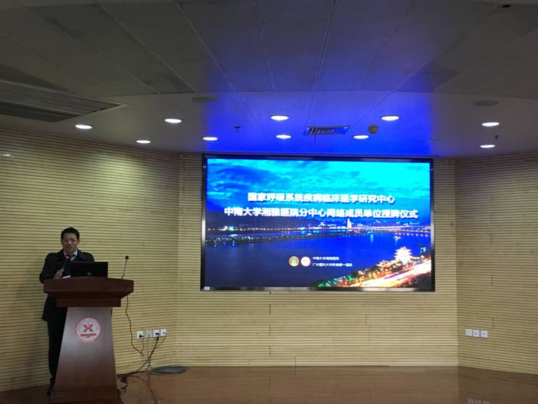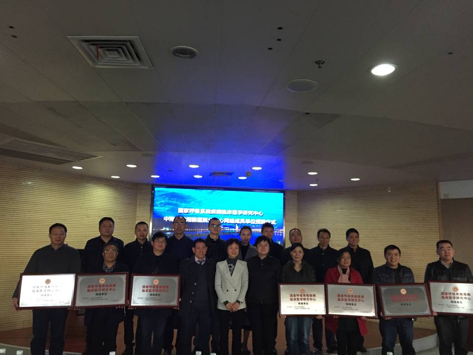 12月17日,国家呼吸系统疾病临床医学研究中心·中南大学湘雅医院分中心网络成员单位授牌仪式在中南大学湘雅医院顺利举行。本次会议由湘雅医院呼吸内科副主任潘频华教授主持,广州医科大学附属第一医院国家呼吸系统疾病临床医学研究中心副主任郑劲平教授从广州发来致辞,介绍了本临床医学研究中心的成立背景、发展思路和建设战略,并对湘雅医院分中心的工作给予了充分肯定,对湖南地区第一批网络成员单位的加入寄予了殷切期望。本次大会主席、中南大学湘雅医院呼吸内科主任、首届湘雅名医胡成平教授亲自为20家网络成员单位一一授牌。