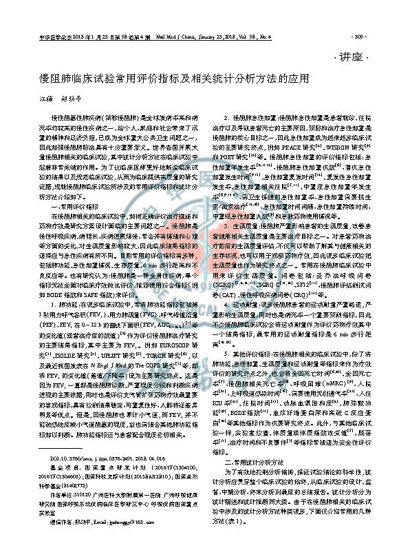 慢阻肺临床试验设计的统计学方法及其应用
