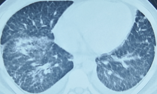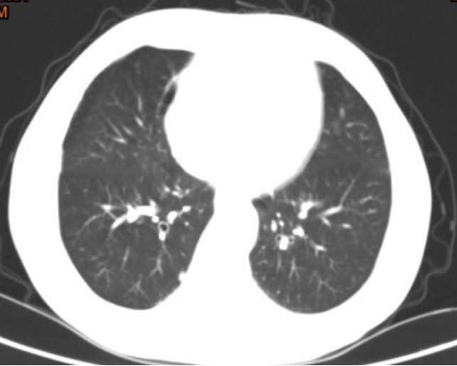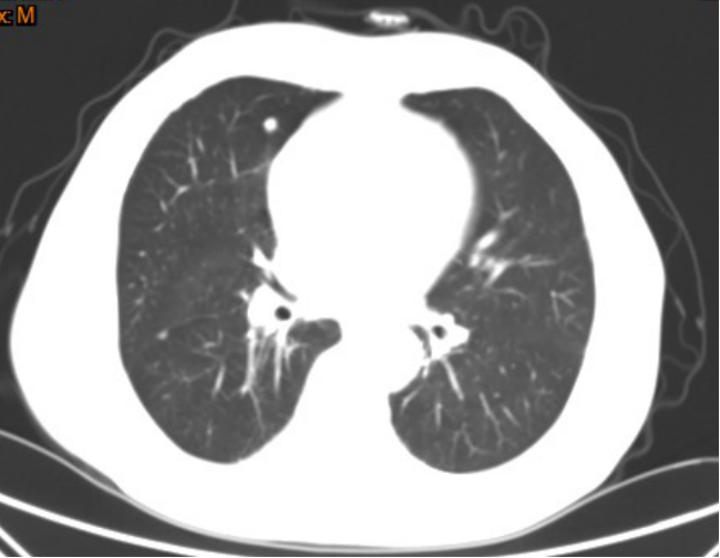 1、两肺散在病灶,考虑炎症,嗜酸性粒细胞性肺炎?