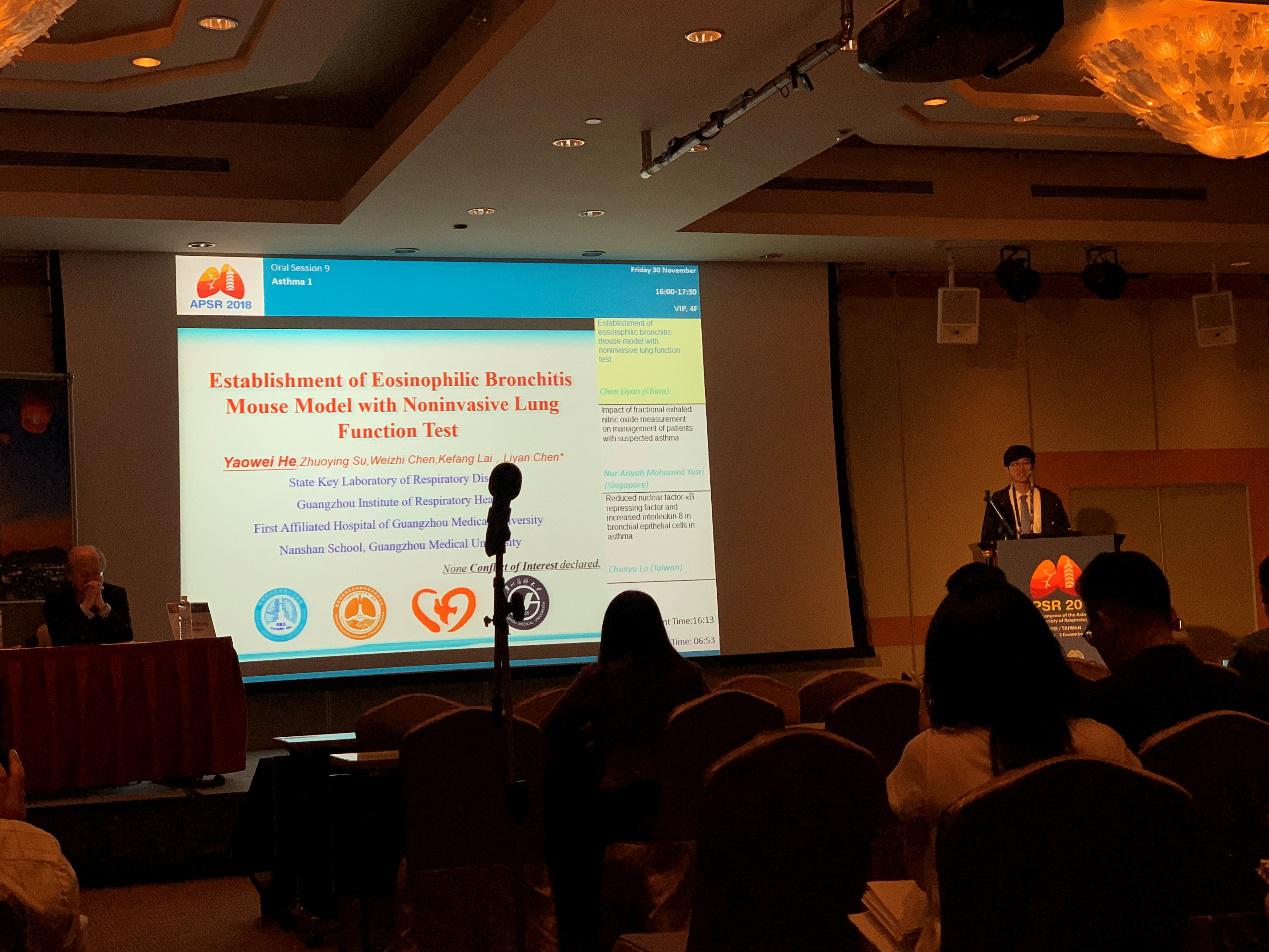 何耀为博士作Establishment of Eosinophilic Bronchitis Mouse Model with Noninvasive Lung Function Test发言