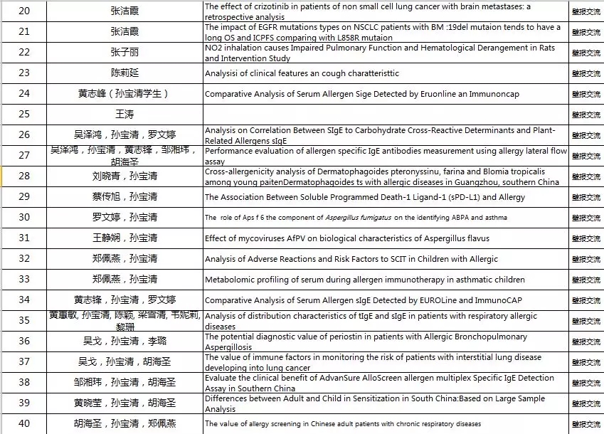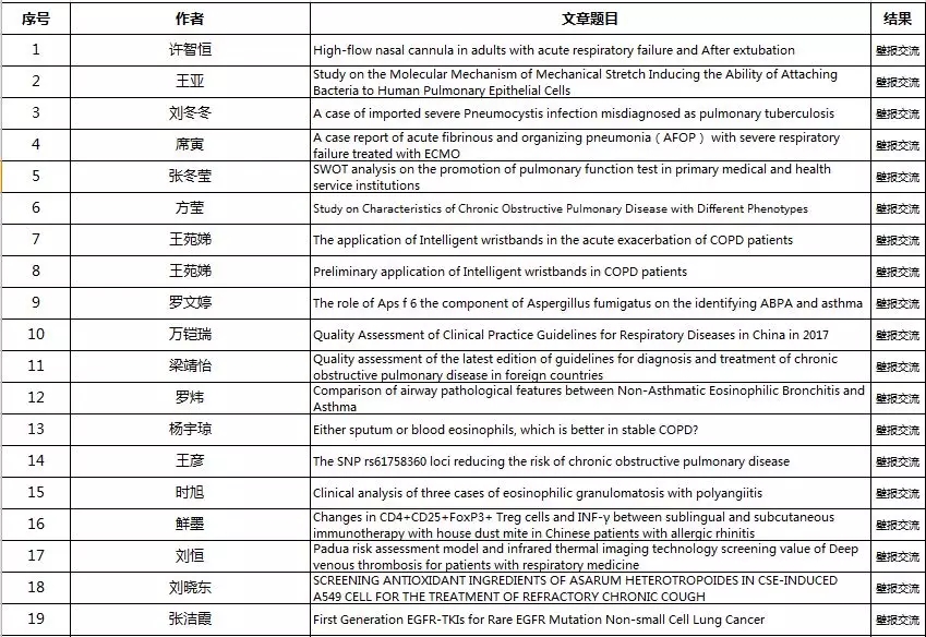 壁报交流代表: