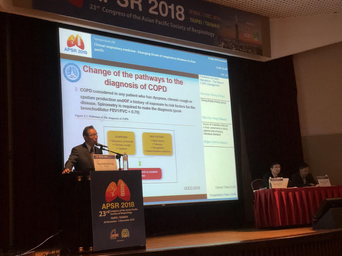 11月29日至12月2日,第23届亚洲太平洋呼吸协会年会(23th Congress of the Asia Pacific Society of Respirology 2018, APSR 2018)在中国台湾台北市举行。亚太呼吸病年会(APSR)目前是继美国呼吸年会(ATS)、欧洲呼吸年会(ERS)外的全球范围最广、影响力最大的呼吸领域的专业盛会之一,是亚太呼吸界最大规模的学术会议。本届APSR会议由多种形式模块组成,并组织了慢性肺疾病、肺肿瘤、肺间质性疾病、肺部感染等多个亚专科的专题研讨,各国学者在会场就相关成果进行了全面而深入的学术讨论和交流。