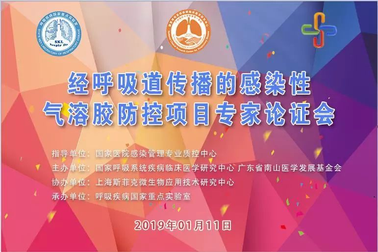 2019年1月11日,由国家医院感染管理专业质控中心指导,国家呼吸系统疾病临床医学研究中心、广东省南山医学发展基金会共同主办,上海斯菲克微生物应用技术研究中心协办,呼吸疾病国家重点实验室承办,在呼吸疾病国家重点实验室会议室召开“经呼吸道传播的感染性气溶胶防控项目论证会”!
