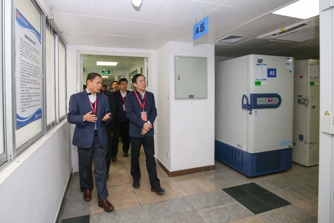 在临床研究中心主任钟南山院士、广医一院院长何建行教授、广州呼吸健康研究院副院长李时悦教授、临床研究中心副主任郑劲平教授等代表的陪同下,徐南平副部长等一行来到中心生物资源库和产学研展览室进行参观,郑劲平教授讲解了临床中心概况及生物资源库建设,钟南山院士、邓方阁教授、周荣教授等分别介绍了I类新药研发、吸入药物研发、红外检测技术、3D裸眼技术、院感防控技术等临床研究中心创新成果的建设发展和创新成果转化情况。