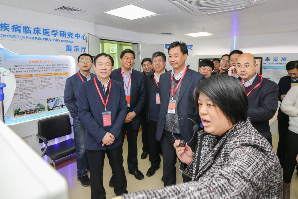2019年2月25日下午,国家科技部副部长、党组成员徐南平、政策法规与创新体系建设司司长贺德方、社会发展科技司司长吴远彬、成果转化与区域创新司司长包献华等领导和专家莅临广医一院国家呼吸系统疾病临床医学研究中心(以下简称“临床研究中心”)开展实地调研活动。广东省科技厅领导王瑞军厅长、杨军副厅长等、广州医科大学党委书记冉丕鑫教授、副校长刘金保教授、中心主任钟南山院士、广医一院何建行院长、广州呼吸健康研究院李时悦副院长等参加调研活动。