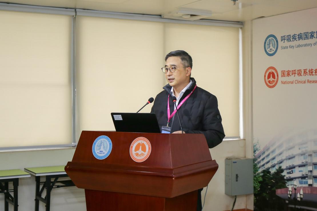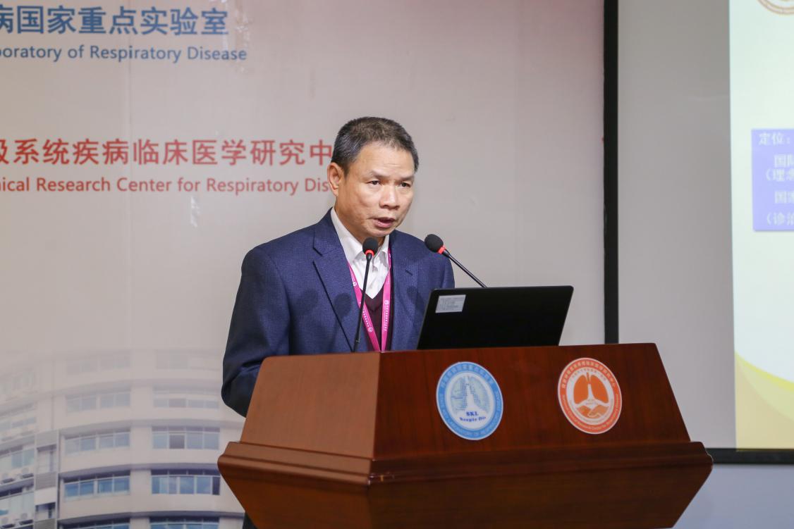 中心副主任郑劲平教授作临床研究中心工作汇报,报告围绕临床研究中心发展历程与战略定位,基础平台建设(包括呼吸疾病生物样本资源库和呼吸慢病大数据平台),“双转化”(基础向临床转化经验医学向循证医学转化)“双推广”(先进/适宜技术推广指南、产品推广),多中心研究与多学科协作,产学研平台建设等方面的代表性成果进行汇报。报告中指出,临床中心创新性地提出慢阻肺早期治疗新战略、轻度哮喘防治新战略,建立肺功能检查标准及规范化培训,积极发挥创新协同作用,在全国范围内推广肺功能检查规范化、咳嗽诊治检查技术、胸外科无管化麻醉及微创技术等适宜技术,同时开展院士大查房工作,重点关注疑难病例。汇报中提及中心建设发展的规划和展望,广州呼吸中心将融合六大功能的综合基地:危重呼吸道疾病救治中心、呼吸疾病基础与临床相结合的转化医学研究中心、呼吸疾病临床研究大数据应用中心、产学研相结合的呼吸领域科技研发中心、呼吸疑难疾病诊治中心、呼吸疾病临床防治的人才培养基地。