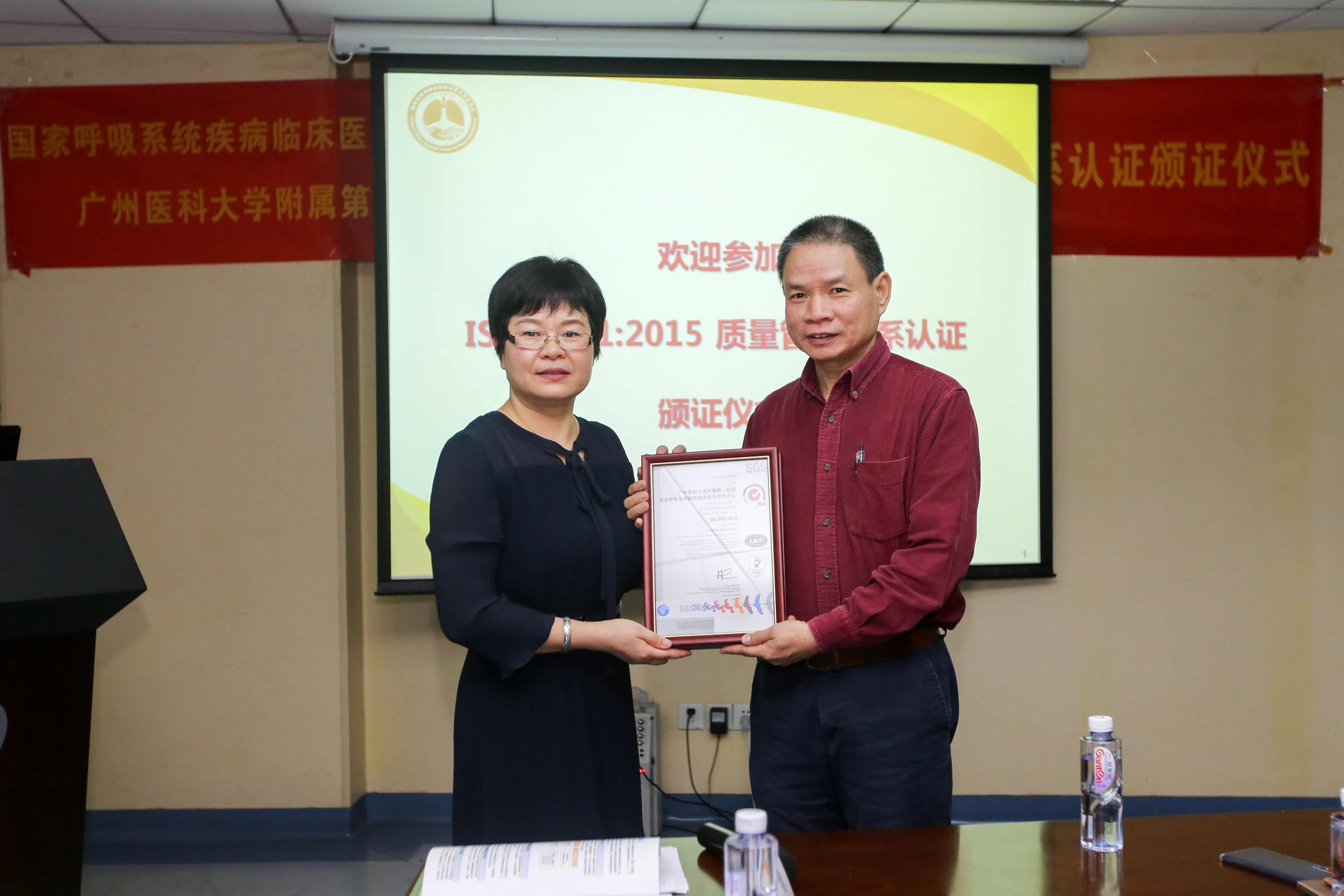 2019年4月23日,广州医科大学附属第一医院国家呼吸系统疾病临床医学研究中心(以下简称“中心”)正式获得由国际公认的检验、鉴定、测试及认证机构SGS颁发的ISO 9001:2015质量管理体系认证证书。能够顺利获得证书,意味着广医一院临床中心在医疗领域取得了又一里程碑式成果,标志着中心质量管理迈上了一个新的台阶。