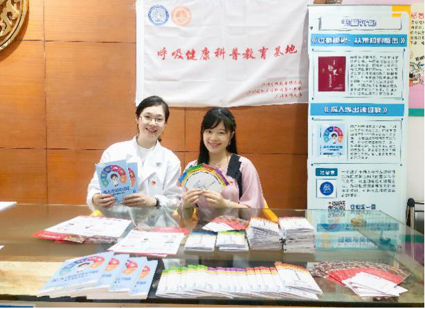 广东省过敏病预防与控制专委会委员兼秘书张冬莹、李凯萍、黎明作呼吸健康宣教并派发科普书籍